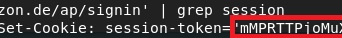 6. Curl Befehl auf Kommandozeile ausgeführt und in ein "grep session" gepiped ... (curl ... bla ... | grep session) Nach jeder Ausführung antwortete der Amazon Server mit einer neuen Session/Cookie-ID.