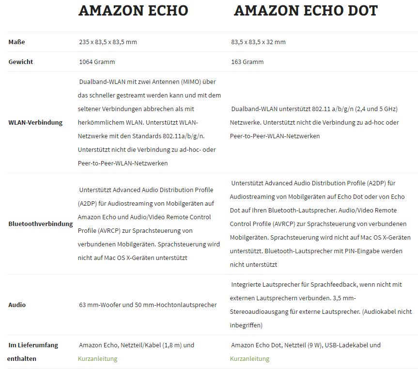 Wenn zwei oder mehr Personen gleichzeitig reden, versteht Echo sein Trigger-Wort jedoch nicht mehr. Auch bekommt Amazon Echo (auf Grund des kleineren Lautsprechers jedoch nicht Amazon Echo Dot) Probleme, wenn es zu laut Musik wiedergibt.
