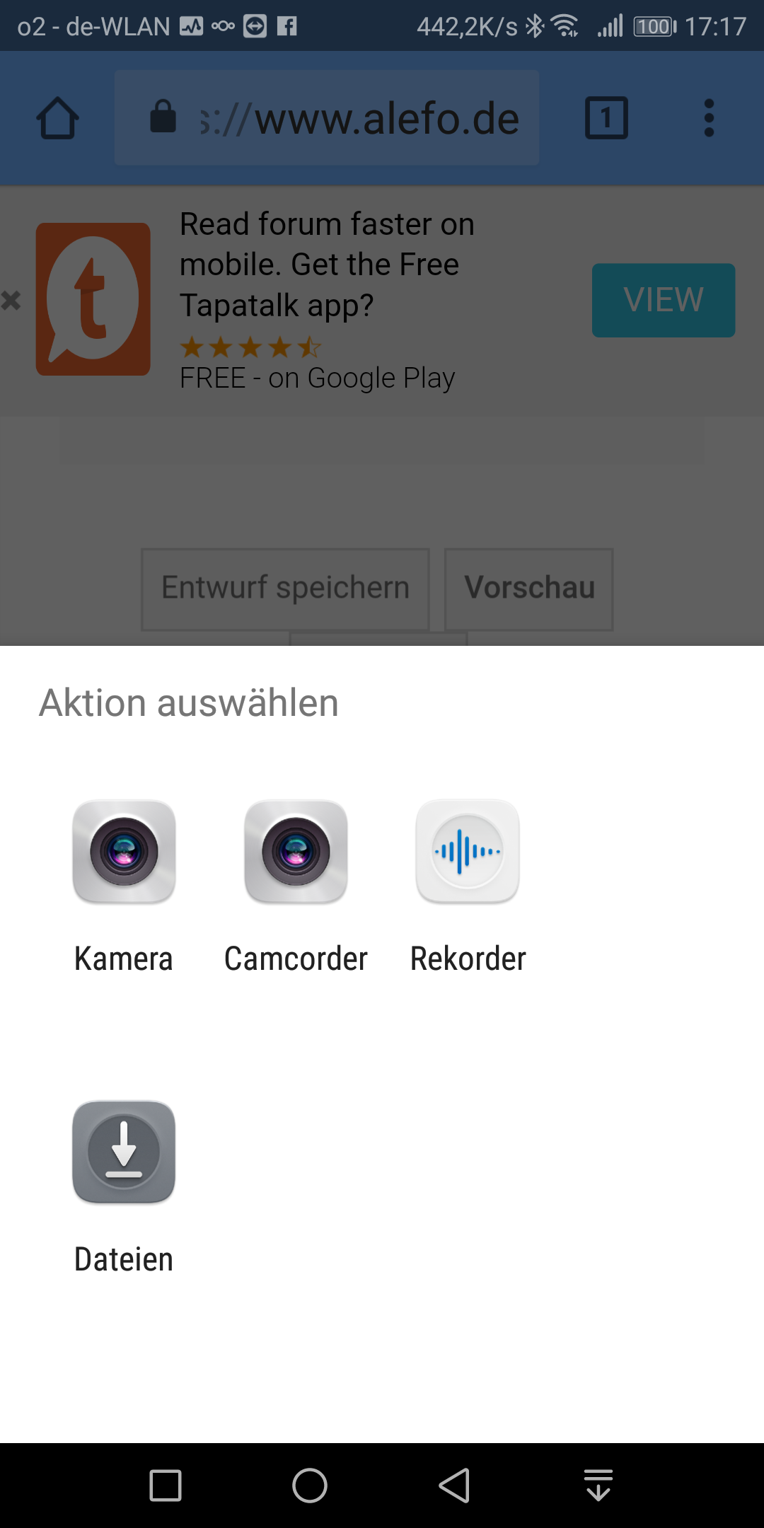 Ich habe das jetzt mal mit dem Google Chrome probiert auf dem Huawei Mate 10 Pro und da kommt ein auswahlfenster, wo ich den Dateimanager auswählen kann.
