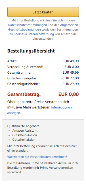 Bei Amazon gibt es übrigens aktuell 3 interessante Promotions: