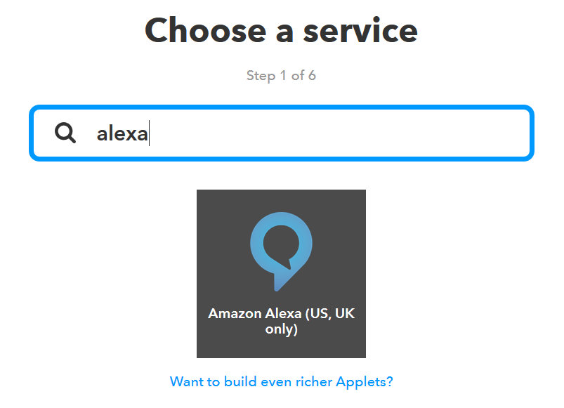 Du loggst dich auf IFTTT.com ein und machst folgendes z.B. um mit einem Signal Wort an Alexa irgendetwas auszulösen: