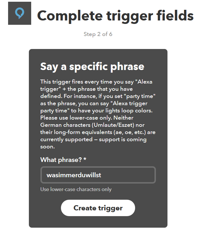 Ich habe das mal mit Mail schicken getestet: Alexa trigger Mail..