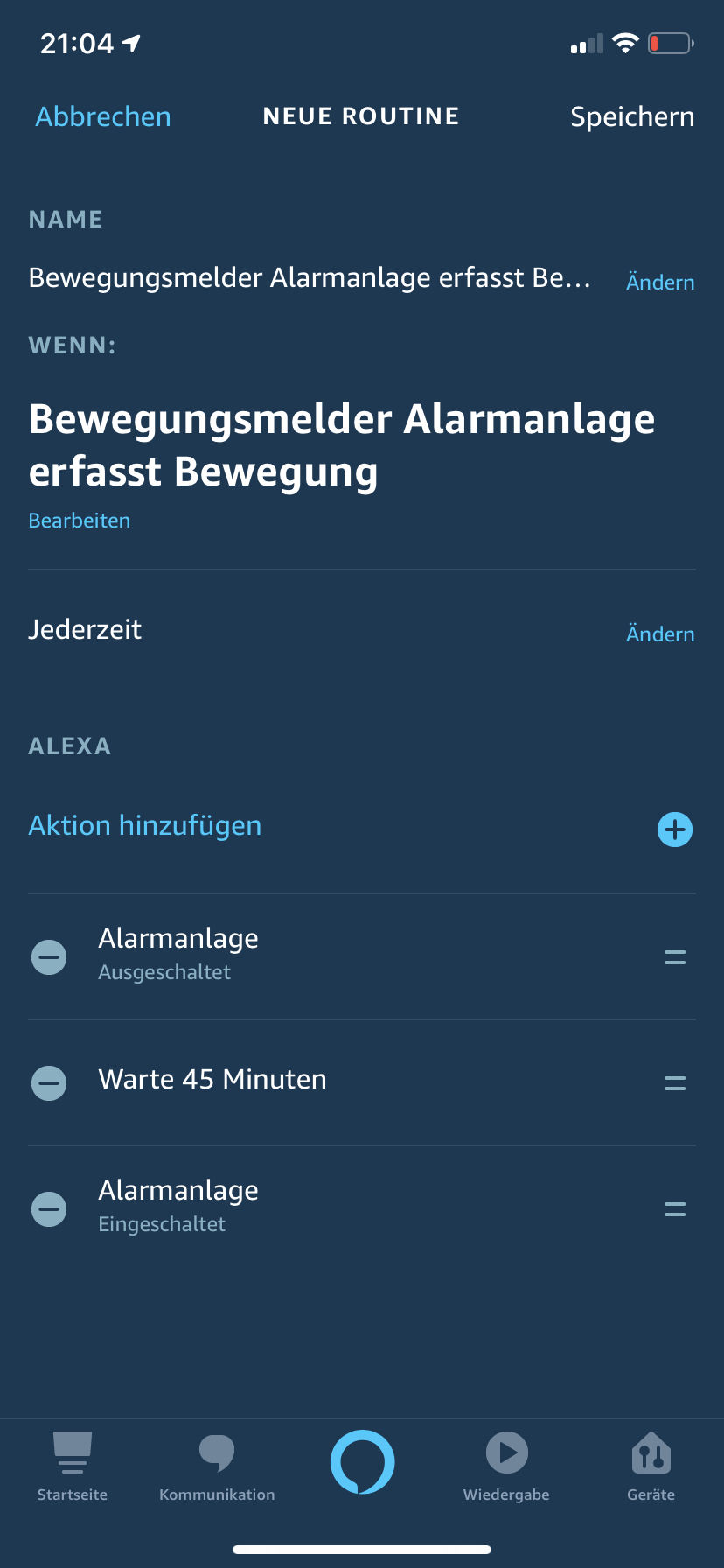Danach sollte aber die Alarm Routine starten wenn eine Bewegung erkannt wird. Da ich jetzt zwei Routinen habe, einmal für den Staubsauger und einmal für die Alarmanlage glaube ich dass bei einer Bewegung beide versuchen zu starten. Oder wie kann ich das ganze lösen? Ich kann es gerade nicht testen, da mein Sohn schläft. :D
