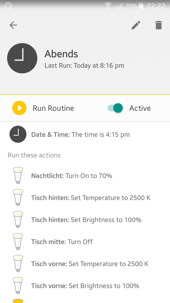 Und wenn Bock hast setzt noch nen Timer in Yonomi das diese Routine