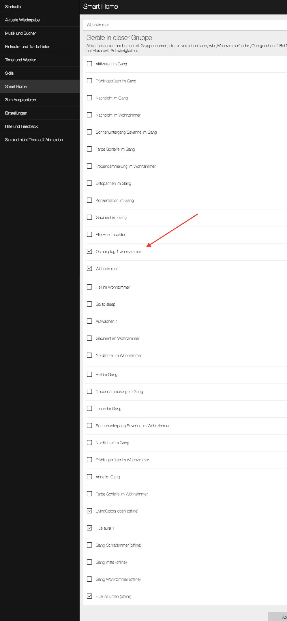 Im Alexa Portal wird es auch erkannt und lässt sich auch der Gruppe (in dem Fall Wohnzimmer) zuweisen: