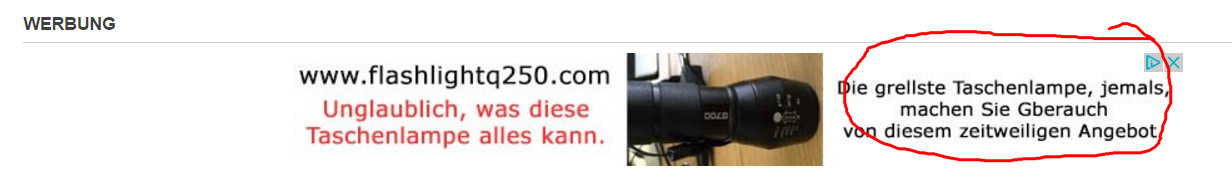 Jeder Benutzer hat aber die Möglichkeit, Werbung die ihm überhaupt nicht zusagt, mit Hilfe des blauen Kreuzes (in der oberen rechten Ecke des Banners), bestimmte Werbung zu unterdrücken.