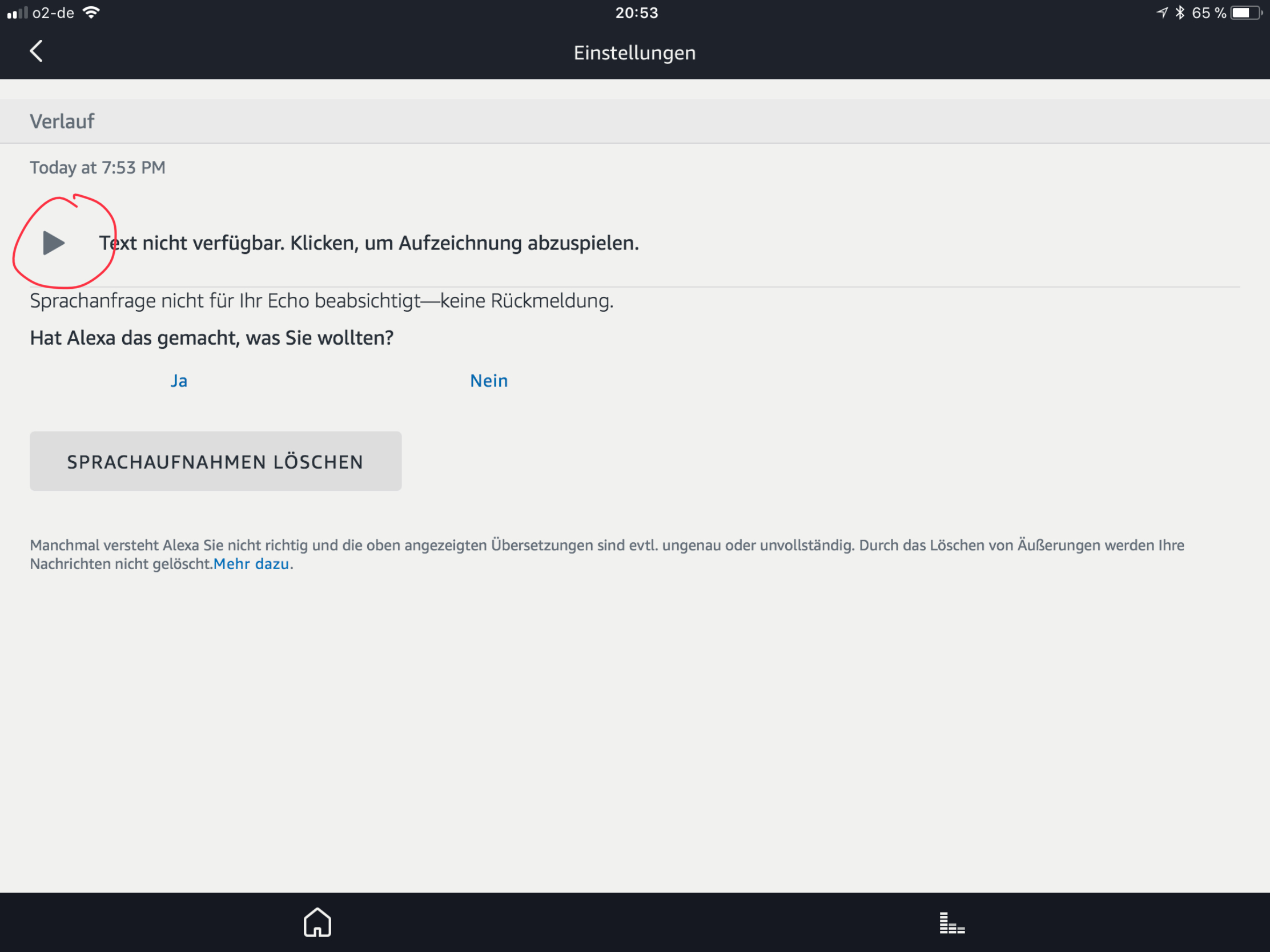 Einfach folgenden Test durchführen, dann kann man mitbekommen wann Alexa das Internet benötigt und auch weiterleitet. Das WLAN, Router deaktivieren bzw. das Internet für den Echo im Route/FRITZBox sperren. Dann reagiert der Echo auf das Hotwort (Alexa, Echo, Amazon oder Computer), daher lokale Hotwort-Erkennung in der Hardware, und schaltet auch den blauen Ring ein, aber es kommt der Hinweis daß Alexa nicht verbunden ist, bzw dich nicht versteht. Die Audio-Voice-Files kann man ja auch unter der Alexa-App / Einstellungen / Allgemein / Verlauf / erkannter Text dann über den Play-Button die Audio-Datei abhören und auch ein Feedback an Amazon wegen der Funktion weiter geben. Dies funktioniert eigentlich immer gut und spätestens nach 24 Stunden hat sich dann ein Amazon-Hotline-Techniker(2. Level) gemeldet. Diese wissen etwas mehr als die Mitarbeiter der normale Hotline.