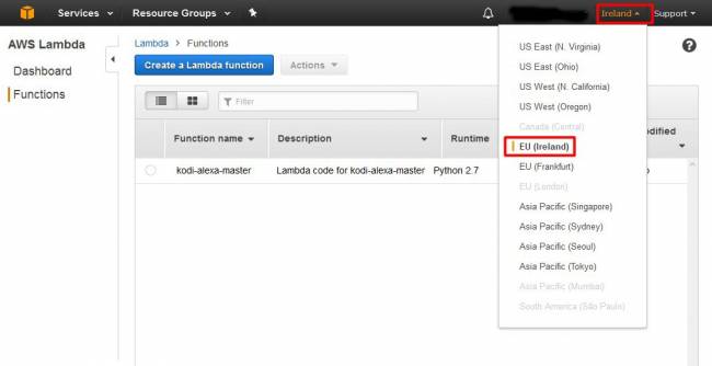 Man muss auch Kreditkartendaten eingeben. Es wird aber nichts berechnet, denn im AWS Account sind 1 Millionen requests im Monat kostenlos enthalten. Das sollte für einen privaten, nicht öffentlichen Skill ausreichen, außer ihr schaut viel zu viel Fern und bombadiert Euren Echo mit Kodi Anfragen im Sekundentakt