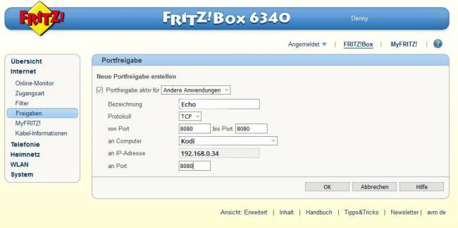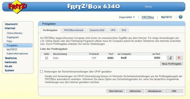 auf die Webobverfläche Eures Kodis zugreifen können, wobei „meine-dynamische-ip“ die dynamische URL ist die ihr euch bei z.B. ddnss.de eingerichtet habt, und 8080 eben der Port ist den ihr sowohl im Kodi als auch bei der Port-Weiterleitung am Router eingetragen habt.